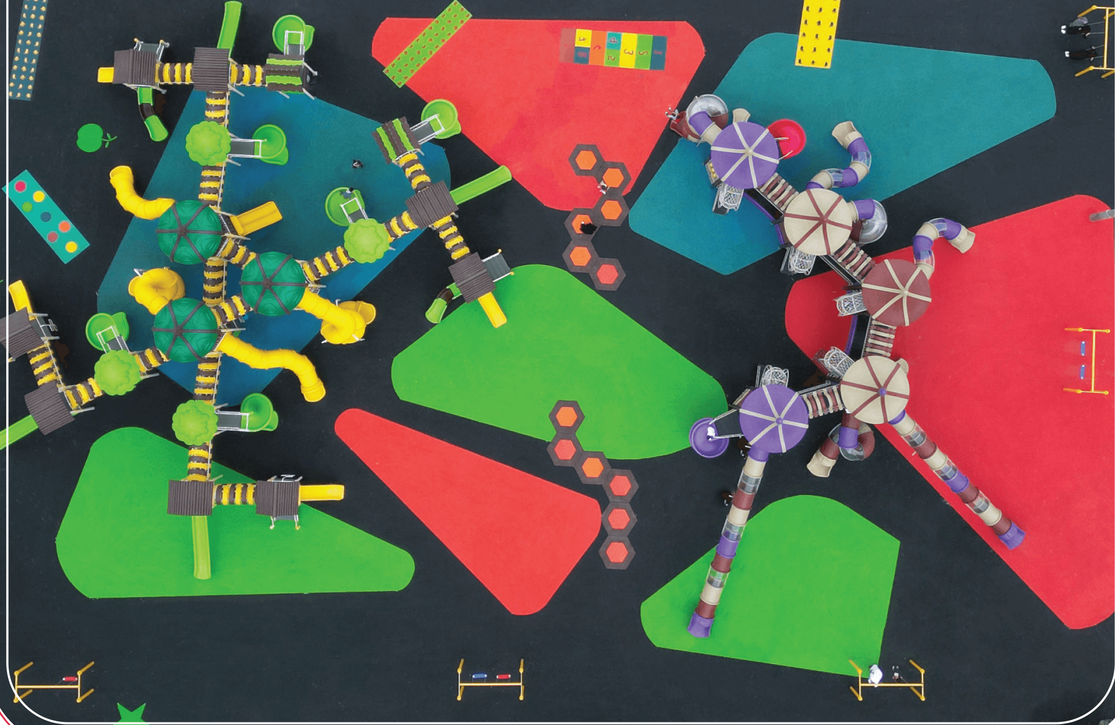 • طبقة ثانية مزيج من بولي يوريثان بايندر وحبيبات SBR قياس 3-1 وبمعدل خلط 20% ينفذ بواسطة الة الرصف من شركة SMG.