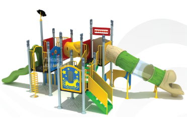 مجموعة لعب ذات تصميم مرتفع نسبيًا تحتوي على وحدات متعددة للعب، مناسبة للأطفال الذين يبحثون عن مزيد من الحركة والصعود.