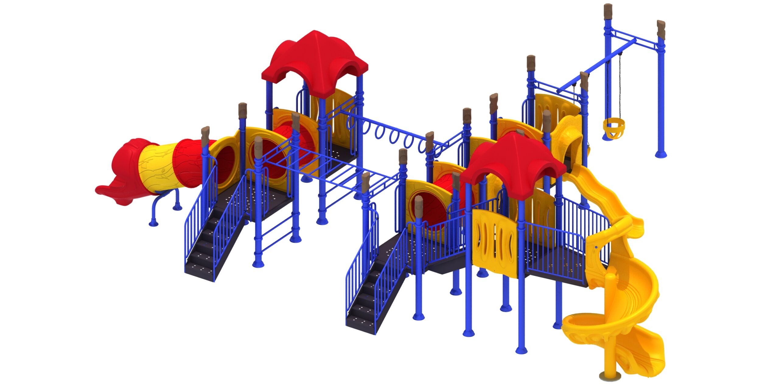هيكل ألعاب متعدد الأنشطة يضم منصات وارتفاعات مختلفة تشجع الأطفال على التفاعل والاكتشاف. تصميمه الانسيابي يجعله خيارًا فعالًا للمساحات الترفيهية المتوسطة.